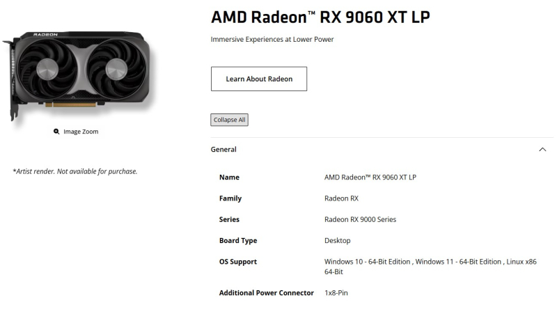 Компания AMD без лишнего шума выпустила ещё одну видеокарту из серии Radeon RX 9000. Речь идёт о модели Radeon RX 9060 XT LP, которая, судя по всему, предназначена для китайского рынка. Информация о карте появилась на официальном сайте AMD.