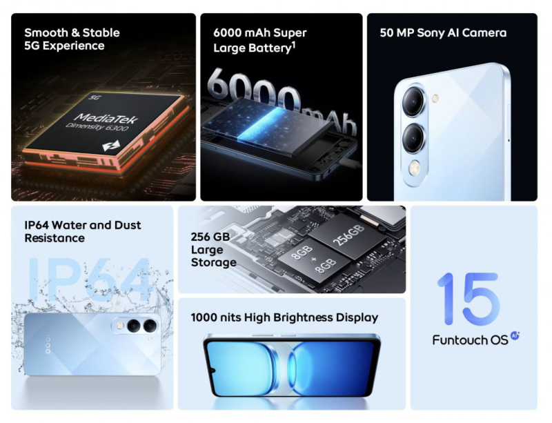 Смартфон оснащён аккумулятором ёмкостью 6000 мА·ч с поддержкой зарядки мощностью 15 Вт и имеет степень защиты от пыли и влаги по стандарту IP64. Устройство работает под управлением Funtouch OS 15 на базе Android 15. Компания iQOO обещает предоставлять обновления безопасности в течение трёх лет. Также в наличии боковой сканер отпечатков пальцев, стереодинамики и 3,5-мм аудиоразъём для наушников.