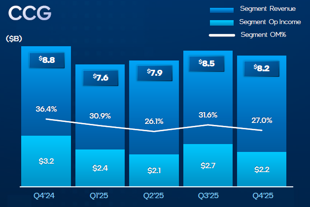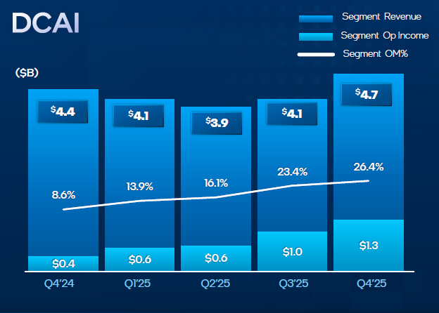 В сегменте ASIC, за которое отвечает получившая определённую независимость Altera, выручка Intel выросла более чем на 50 % по итогам всего 2025 года, а в четвёртом квартале увеличилась на 26 % последовательно. В прошлом квартале она вышла на годовой приведённый уровень более $1 млрд.