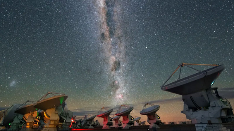 Комплекс ALMA в Чили создавался для «прослушивания» Вселенной в первые 100 млн лет её развития после Большого взрыва. Радиодиапазон позволяет собирать данные о составе холодного газа и пыли в пространстве, которые невидимы в оптическом и инфракрасном диапазонах, а также в условиях поглощения таких фотонов горячим и холодным веществом. ALMA — это первоначально европейский проект, в котором приняли участие США, Япония и другие страны. В основном он ассоциируется с проектами Европейской южной обсерватории. Новые усилители для ALMA создавали физики Института прикладной физики им. Фраунгофера (Fraunhofer IAF) и Института радиоастрономии Макса Планка (Max Planck Institute for Radio Astronomy).